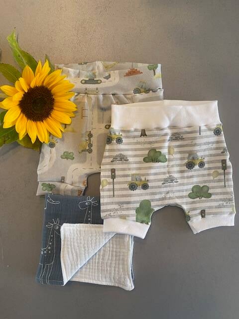 - Trui, shirtje of jumpsuit – afhankelijk van het seizoen en de wens, voeg ik een heerlijk zacht bovenstukje toe in een bijpassende print