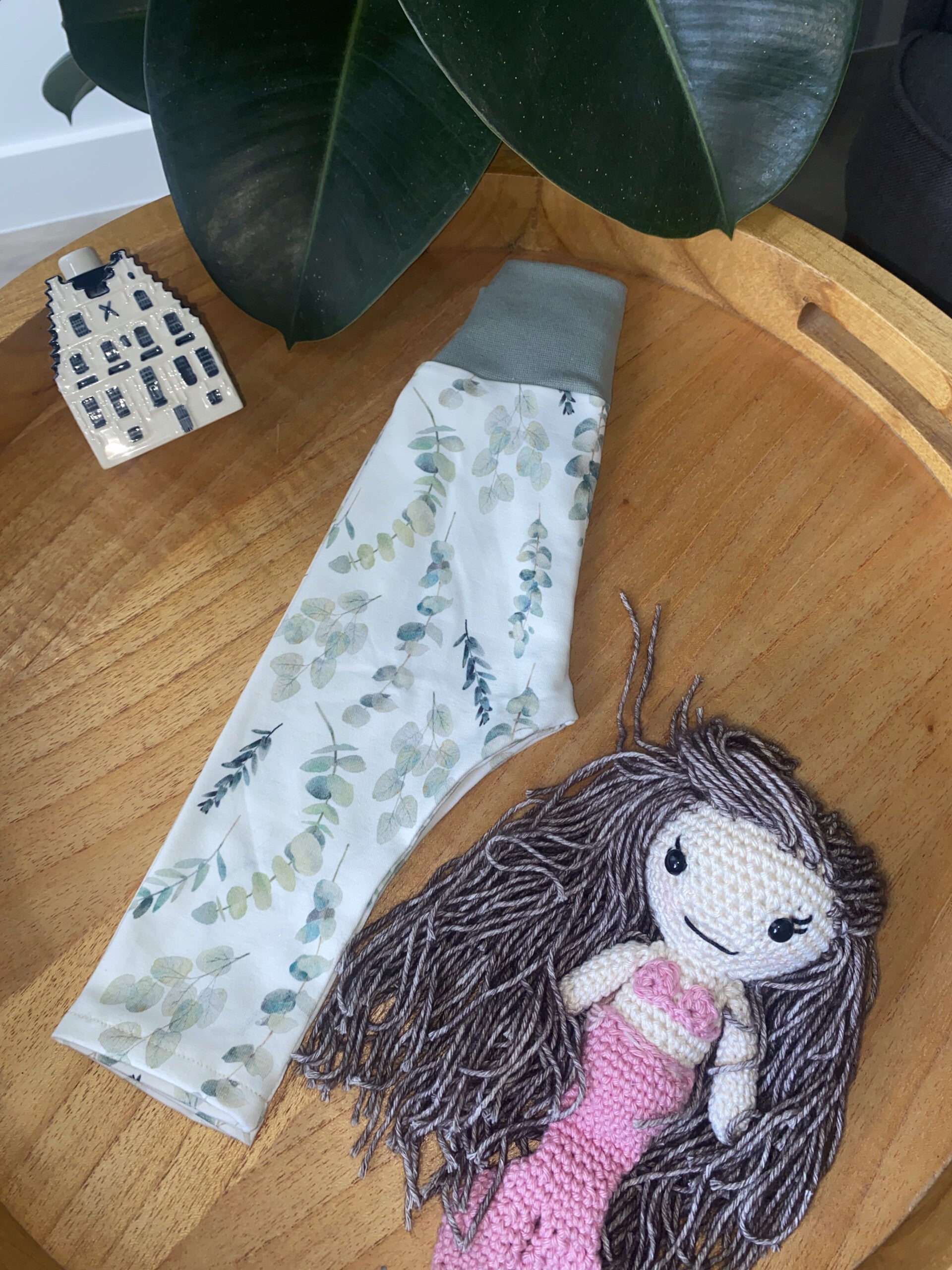 Deze schattige baby legging in een zachte eucalyptusgroene kleur is met zorg handgemaakt van rekbare en ademende stof. De comfortabele boord sluit mooi aan zonder te knellen, zodat je kleintje vrij kan bewegen en spelen.