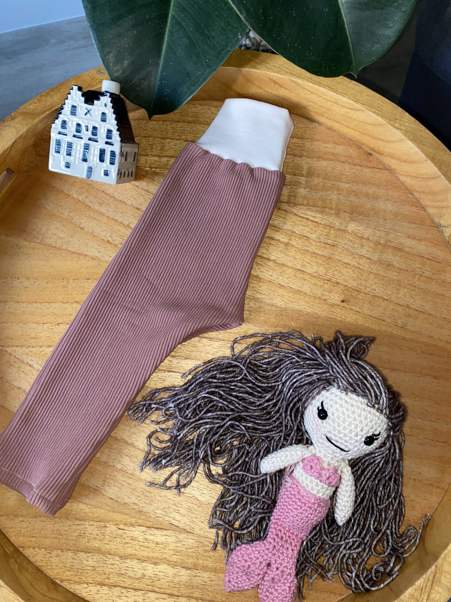 Deze lieve baby legging van oudroze ribstof is een tijdloze basic voor de garderobe van je kleintje. De ribstof voelt zacht aan, heeft een subtiele stretch en beweegt fijn mee tijdens het spelen, kruipen en ontdekken. De brede, zachte tailleband in wit sluit mooi aan zonder te knellen, waardoor je kindje comfortabel kan bewegen.